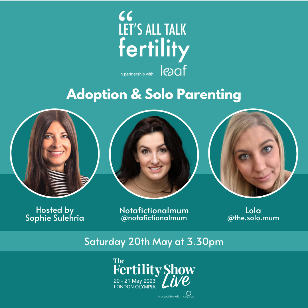 The Let’s all Talk Fertility Lounge in partnership with Leeaf was loved by our visitors last year and will once again feature inspirational IVF patients & advocates sharing their stories in an informal chat with Sophie Sulehria.